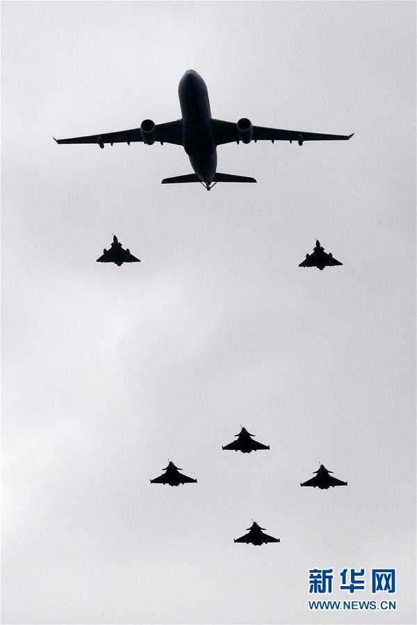 这是7月14日在法国巴黎国庆阅兵仪式上拍摄的飞机。当日,法国在首都巴黎举行国庆阅兵仪式。新华社发(杰克·陈摄)