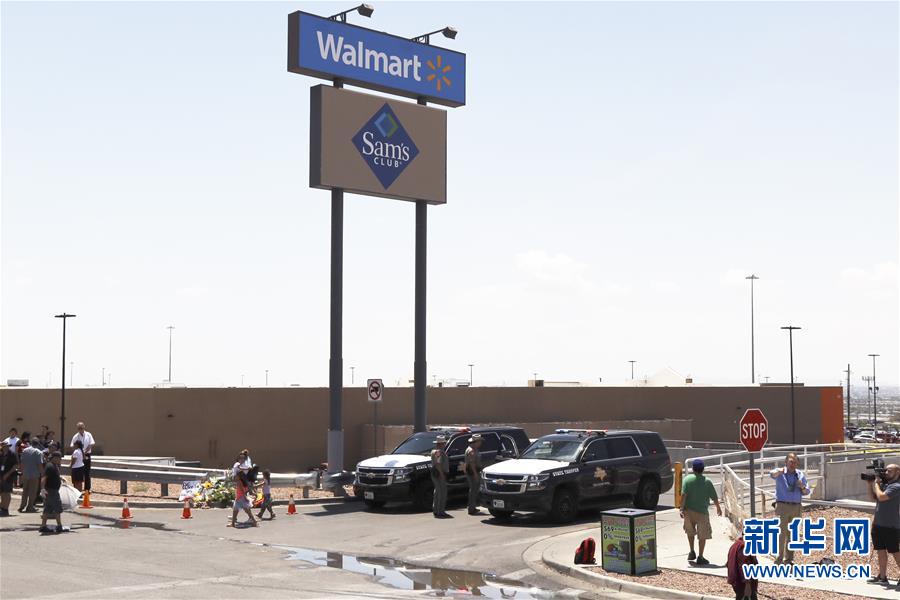 8月4日,在美国得克萨斯州西部埃尔帕索市,警察在枪击案现场附近警戒。新华社记者刘立伟摄