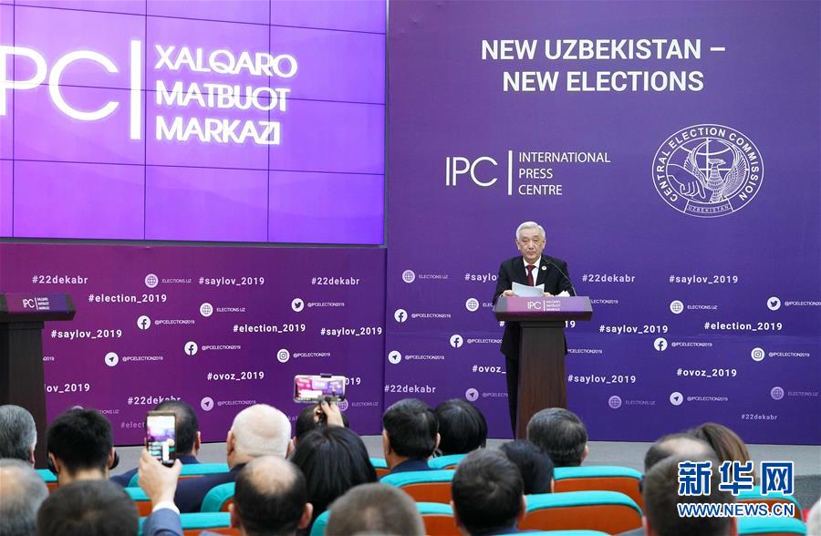 12月23日,在乌兹别克斯坦首都塔什干,乌中央选举委员会主席阿卜杜萨洛莫夫公布选举结果。乌兹别克斯坦中央选举委员会23日宣布,22日举行的乌最高会议立法院(议会下院)选举产生了150名议员中的128名,其余22名议员将在两周后举行的第二轮投票中产生。新华社发(扎法尔摄)