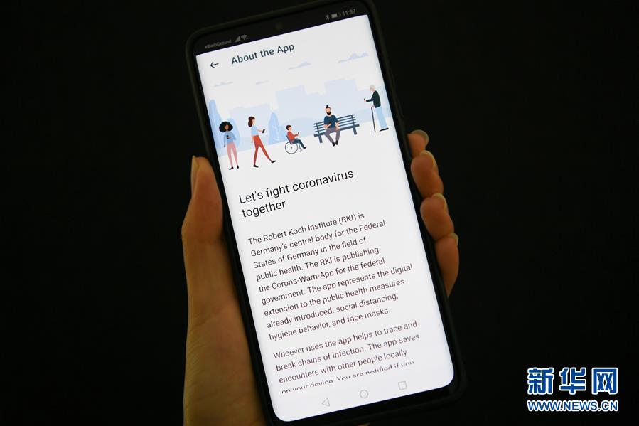 这是6月16日在德国法兰克福拍摄的用于追踪新冠疫情的移动设备应用程序“Corona-Warn-App”。新华社记者逯阳摄