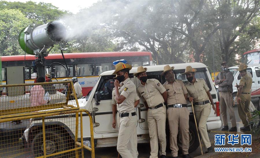 12月20日,消杀车辆在印度班加罗尔街头作业。印度卫生部19日发布的新冠疫情统计数据显示,截至当天印度累计确诊病例超过1000万例,成为继美国之后第二个确诊病例过千万的国家。新华社发