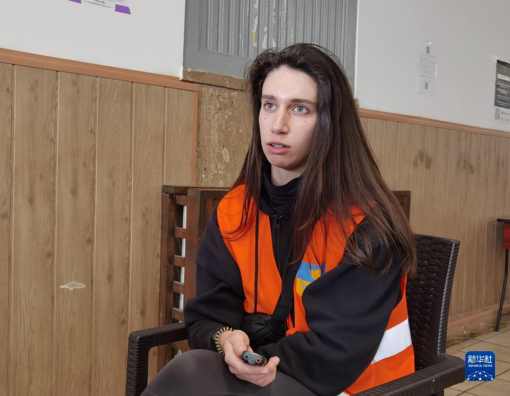 4月21日,在罗马尼亚首都布加勒斯特火车北站,在这里当志愿者的乌克兰姑娘奥列娜在车站2号休息室接受新华社记者采访。新华社记者林惠芬摄